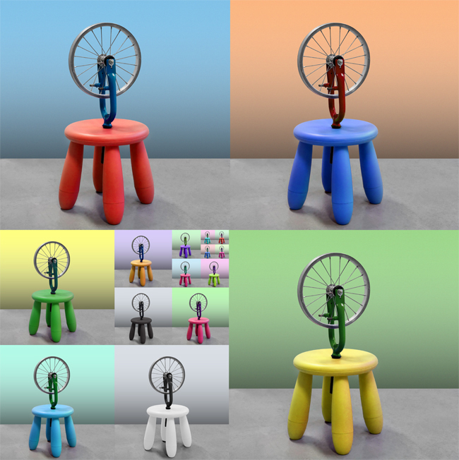 Inspiré de Roue de bicyclette, Marcel Duchamp, 1913.